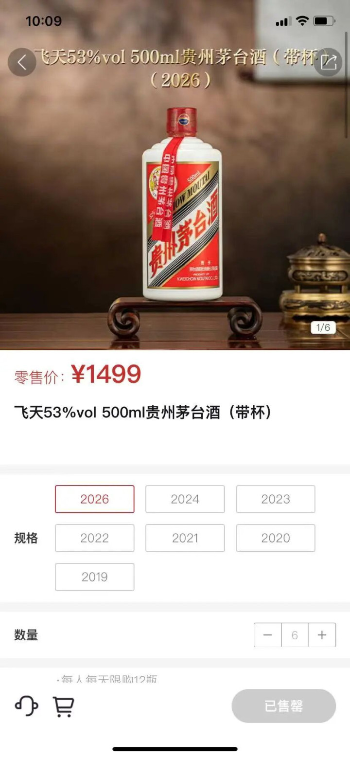 据了解,1月1日53%vol500mL贵州茅台酒(2026)正式登陆i茅台开售。根据平台规则,本次销售每人每日限购12瓶,单笔订单每6瓶按整箱发出。